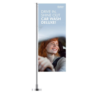 "People" line wash tunnel flag: "DRIVE IN, SHINE OUT CAR WASH DELUXE!" 120 x 300 cm