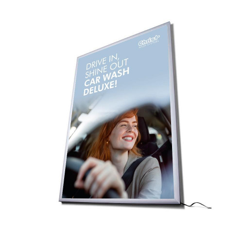 "People" line wash tunnel DIN A1 backlit foil: "DRIVE IN, SHINE OUT CAR WASH DELUXE!"